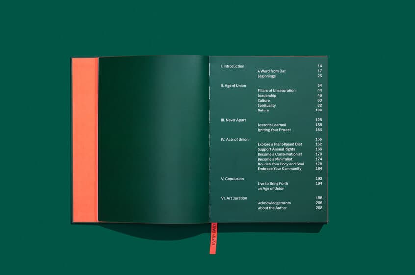 Entrepreneur, fondateur de Lightspeed et de la galerie Never Apart, Dax Dasilva publie avec Age of Union un premier livre puisant dans ses propres réflexions. Il propose une vision personnelle et philosophique afin d’engager une évolution positive de notre monde. Notre mandat : concevoir le design complet des deux versions d’édition (trade book and art book) ainsi que le commissariat des œuvres intégrées à l’ouvrage.