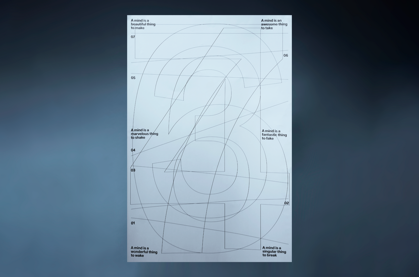 At the center of the poster is an abstract 3D realization by Georg Fasswald, frequent Austrian collaborator of the studio. The graphic proposal is accompanied by phrases by Steve Savage who, true to form, uses anaphora to speak of reason. The posters were also animated and published to promote the dance.